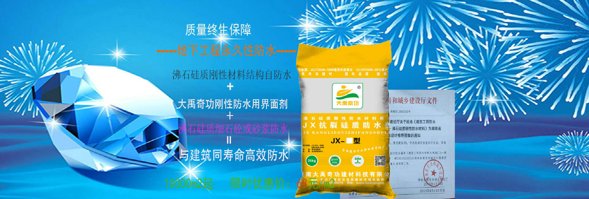 湖南大禹奇功建材科技有限公司,是應(yīng)現(xiàn)代科技和人們品質(zhì)生活的需要成立的。經(jīng)研發(fā)、生產(chǎn)、銷(xiāo)售新型環(huán)保建筑材料、防水材料、砼外加劑。與工程施工為一體的,現(xiàn)代化綜合型建材高科技企業(yè),其前身為海外注冊(cè)的“美亞集團(tuán)香港國(guó)際企業(yè)有限公司” 公司技術(shù)力量雄厚,擁有專門(mén)的科研開(kāi)發(fā)、設(shè)計(jì)人員和海外研發(fā)基地,并具有一支技術(shù)過(guò)硬的專業(yè)施工隊(duì)伍和完善的質(zhì)量管理體系,自主研發(fā)的“大禹奇功”“大禹圣君”“多美亞”品牌產(chǎn)品,引進(jìn)海外先進(jìn)技術(shù)、采用中德合資原材料、美國(guó)助劑,其質(zhì)量和技術(shù)得到了充分保障。最近公司研發(fā)團(tuán)隊(duì)在高分子卷材環(huán)保、耐侯,及環(huán)保型合成高分子涂料的研發(fā)取得了新的成就,研發(fā)的適應(yīng)天面、平臺(tái)等外露場(chǎng)所的抗紫外線、環(huán)保型露天防水涂料,和新型高分子自粘卷材已申請(qǐng)國(guó)家專利。...